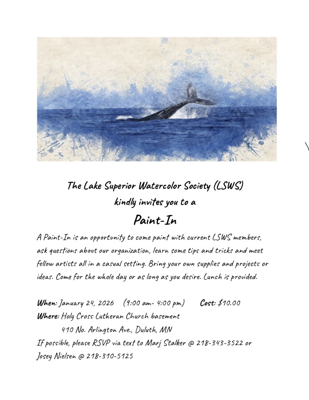 | Three member shows of The Lake Superior Watercolor Society are slated for 2026! Check back as more information on dates and locations becomes available. |